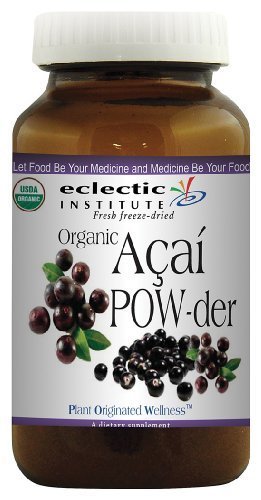 Organic Acai POW-der Plant Originated Wellness 100% FRESH FREEZE-DRIED: Acai (ah-sigh-ee) is a large palm tree indigenous to the Amazon Basin. Acai fruit is traditionally of great importance as food and medicine. Acai is a rich source of antioxidants including anthocyaninsand procyanidinis, and also contains healthy omega fats, protein and fiber. These nutrients are carefully preserved by freeze-drying, which we believe to be the gentlest and therefore best method of drying and preserving medicinal and food plants. Eclectic Institute has over 25 years of freeze-drying experience, and remains the only nutraceutical manufacturer with a full line of herbs processed entirely on-site using our own freeze-driers. POW-ders: Plant Originated Wellness is anew concept in nutrition, whole, healthy, organic freeze-dried herbs and antioxidant - rich fruits and vegetable. Our POW-ders provide great tasting convenience and economy with no added sweeteners or flavorings, allowing you to enjoy the goodness and fresh taste of pure nature. Serving Size: 3 g (2 tsp) Servings per container: 30 Ingredients: ORGANIC freeze-dried Acai (Euterpe Oleracea) and Citric Acid. 100% Kosher. Suggested Use: 1 level teaspoon for each 60 lbs of body weight. Mix the Organic Acai POW-der in water or our favorite juice, smoothie or drink. Discontinue use if unusual symptoms occur. Discontinue use if unusual symptoms occur. Consult your health care advisor regarding the use of herbs during pregnancy, with infants or with prescription drugs. Keep out of reach of children. Because Acai contains fragile compounds that are sensitive to moisture, air and