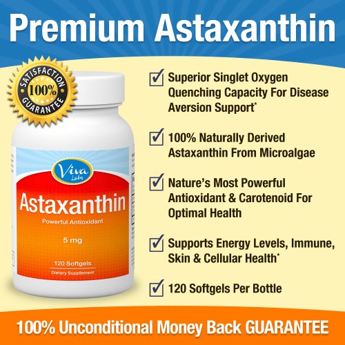 Viva Labs Premium Astaxanthin, 5mg, 120 Softgels (#1 Super Antioxidant) description